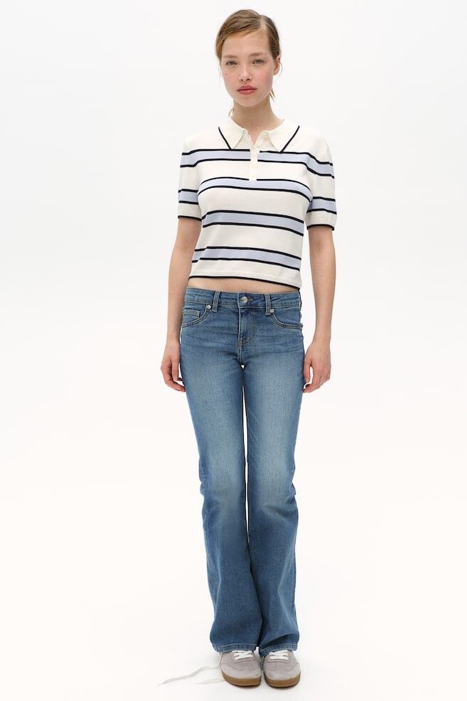 Джинсы из денима, слегка эластичного для комфорта. Расклешенная модель с облегающим кроем в талии и бедрах и расклешенной брючиной от колена. Заниженная талия, ширинка на молнии и пуговице. Ложные передние карманы, карман для монет и открытые задние карманы. Нормальная длина. Эта модель предназначена для создания небольшого эффекта стопки или его отсутствия в передней части стопы. Икона моды с 70-х годов! Размер модели: рост модели 176 см/5 футов 9 дюймов, размер одежды 36. Размер: Талия: Окружность: 77,5 см (размер 40), Внутренняя сторона штанины: Длина: 82,5 см (размер 40) Длина: Длинная Высота талии: Заниженная талия Посадка: Приталенная Стиль: Выставлено Концепция: РАЗДЕЛЕННАЯ
