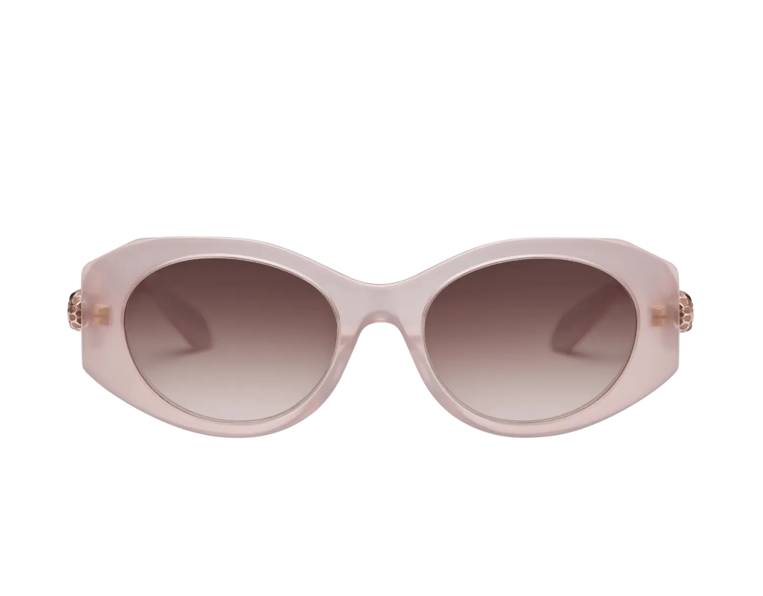 Солнцезащитные очки Serpenti Forever из овального ацетата с эмалированным декором в виде змеиной головы на заушниках. Солнцезащитные очки Serpenti Forever с овальной оправой из опалиново-розового ацетата и коричневыми линзами. Вдохновленные культовой застежкой сумок Serpenti, дужки украшены драгоценной змеиной головой, украшенной нанесенной вручную эмалью, что делает этот стиль неотразимо пленительным.