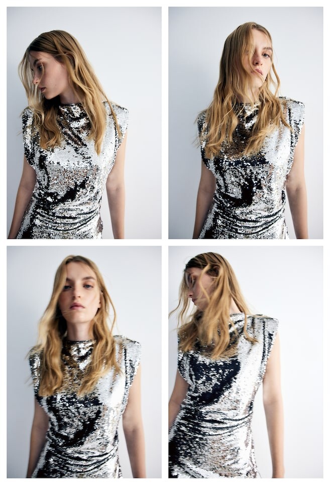 Платье с пайетками и подплечниками H&M, серебряный