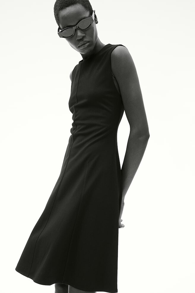 Слегка расклешенное платье без рукавов из плотного трикотажа с круглым вырезом и потайной застежкой-молнией на крючок сзади. Слегка подчеркнутая талия. Размер модели: рост модели 177 см/5 футов 10 дюймов, размер M. Размер: плечо: ширина: 37,0 см (размер M), передняя часть: длина: 95,5 см (размер M) Длина: Короткая Длина рукава: Без рукавов Посадка: Облегающий Фильм: Расклешенный Вырез: Круглый вырез