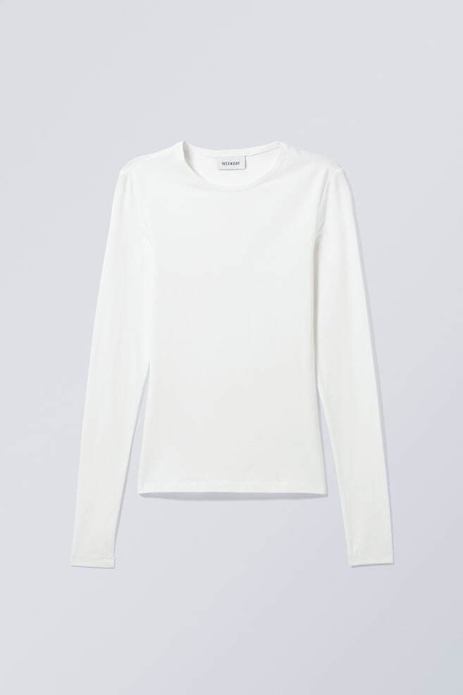 Облегающий топ с длинными рукавами облегающего силуэта из мягкого хлопкового джерси с легким эластаном из переработанного сырья для дополнительной эластичности и комфорта. Топ имеет круглый вырез и прямой низ. Рост модели: рост модели 176 см/5 футов 9 дюймов, размер S. Длина: стандартная длина Длина рукава: длинный рукав Посадка: приталенный крой Вырез: круглый вырез