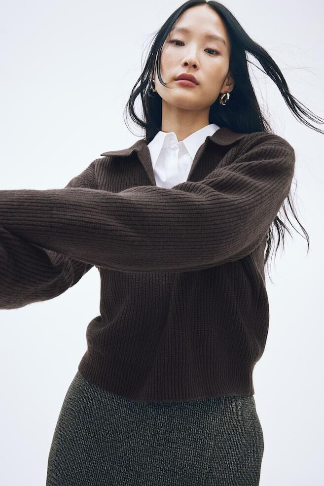 Ребристый свитер с воротником H&M, коричневый