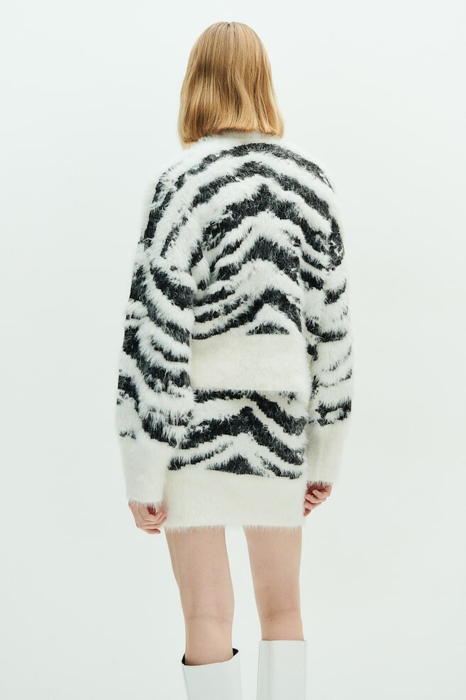 Облегающая фигуру мини-юбка из мягкого, пушистого жаккардового трикотажа. Пояс и нижний край связаны резинкой.