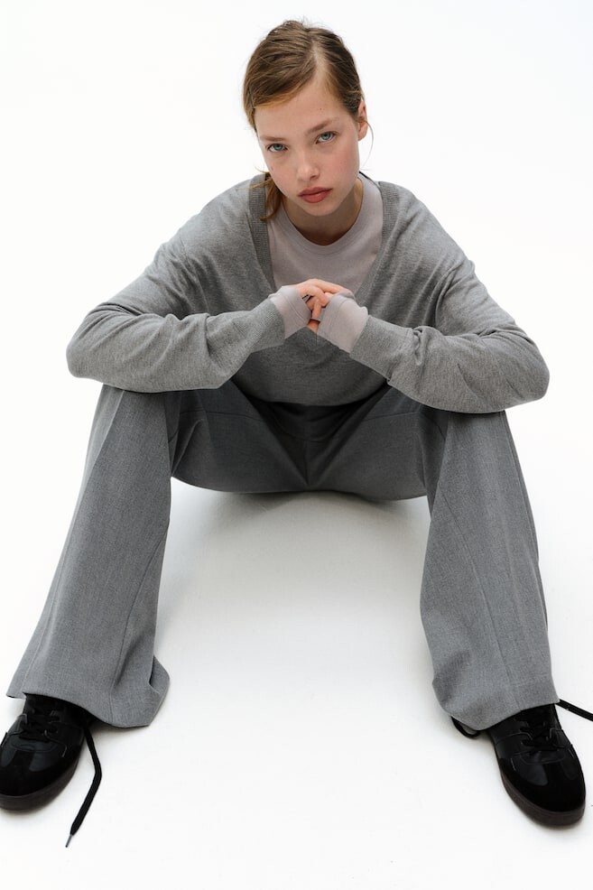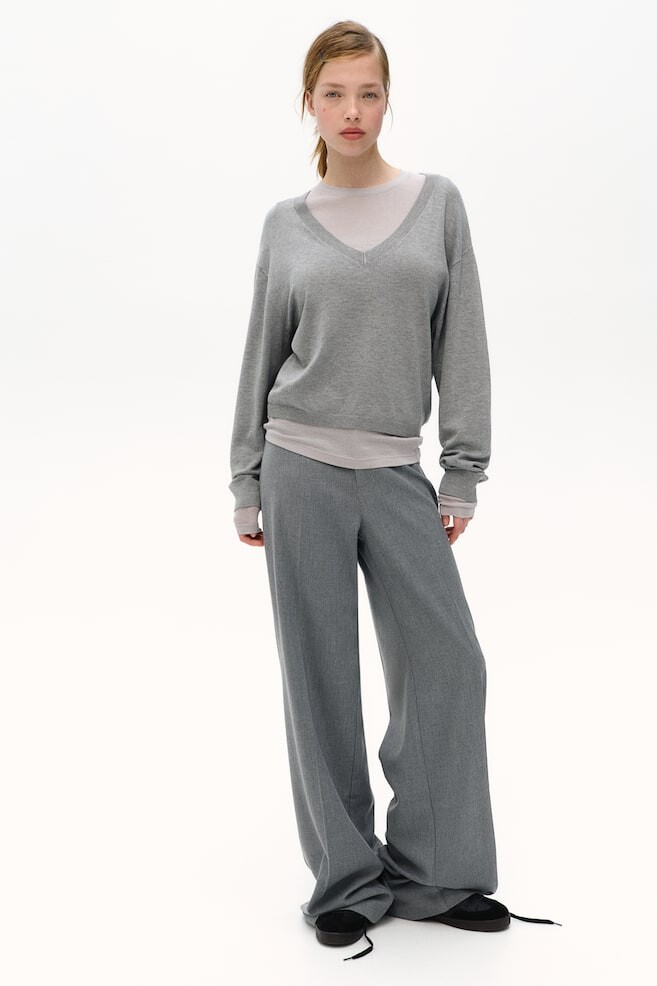 Свитер тонкой вязки с v образным вырезом H&M, серый