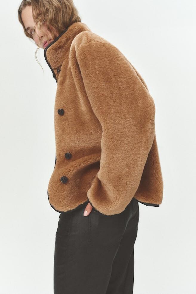 Куртка свободного кроя из мягкой, пушистой ткани с отделкой по краям из материала с покрытием. Воротник-стойка и застежка на пуговицы в виде переключателя. Вырез на плечах и изящные карманы в боковых швах. Без подкладки. Размер модели: рост модели 178 см/5 футов 10 дюймов, размер M. Размер: спинка: длина: 64,5 см (размер M), рукав: длина: 59,5 см (размер M). , Плечо: Ширина: 47,0 см (размер M) Длина: Стандартная длина Длина рукава: Длинный рукав Посадка: Свободный крой Воротник: Воротник-стойка Концепция: РАЗДЕЛЕННАЯ