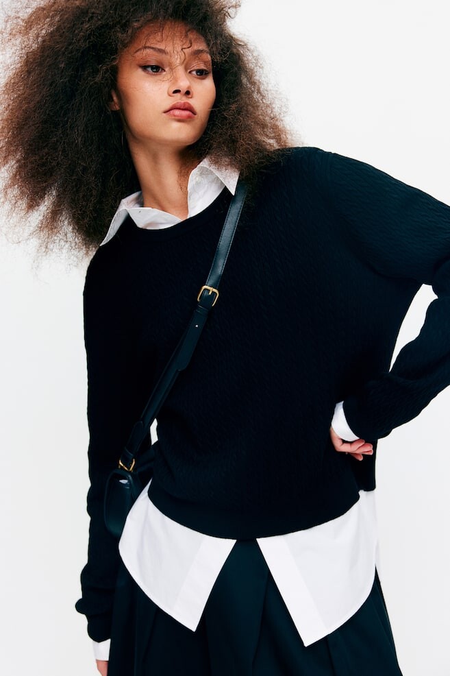 Свитер косой вязки H&M, черный