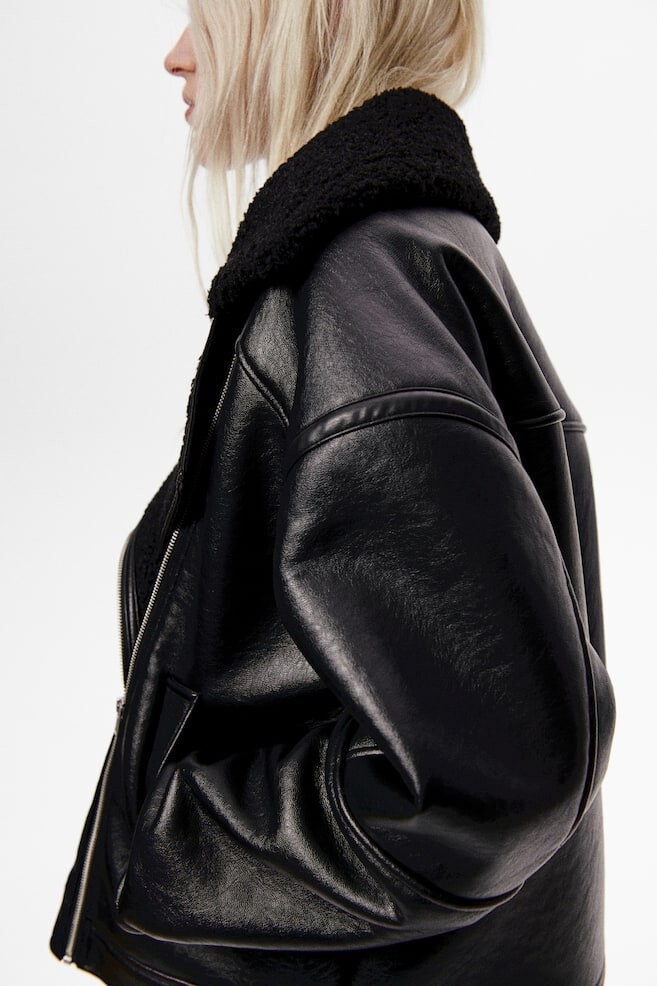 Байкерская куртка свободного кроя из материала с покрытием, с воротником с лацканами из мягкого флиса тедди. Молния спереди, заниженная линия плеча и прорезные карманы. Тедди-подкладка. Размер: Плечо: Ширина: 59,0 см (Размер М), Рукав: Длина: 56,0 см (Размер М), Спина: Длина: 62,5 см (Размер М) Длина: Нормальная длина Длина рукава: Длинный рукав Посадка: Свободный крой Воротник: Отворот Стиль: Пилотная куртка, байкерский Концепция: РАЗДЕЛЕННАЯ