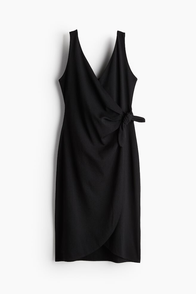 Платье длиной до икры из структурированного трикотажа с широкими бретелями и V-образным вырезом с обеих сторон. Передняя часть с запахом, с узкими завязками с одной стороны и потайной пуговицей с другой. На подкладке сверху. Размер модели: рост модели 180 см/5 футов 11 дюймов, размер S. Размер: Плечо: Ширина: 34,0 см (Размер M), Спина: Длина: 114,5 см ( Размер M) Длина: Миди Длина рукава: Без рукавов Посадка: Обычный крой Фильм: Запахнутый Вырез: V-образный вырез