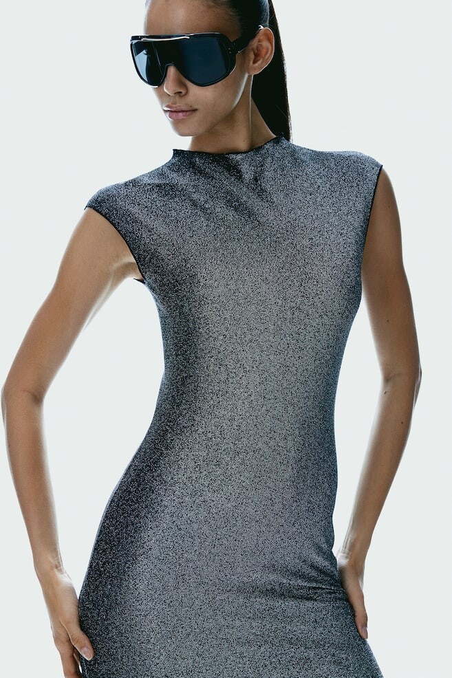 Облегающее фигуру мини-платье из эластичного трикотажа с оверлоком по краям. Модель с воротником-стойкой и короткими рукавами. Размер модели: рост модели 178 см/5 футов 10 дюймов, размер S. Размер: спереди: длина: 84,5 см (размер M) Длина: Мини Длина рукава: короткий рукав Посадка: приталенная Воротник: стойка Фильм: облегающий Фильм рукава: Кепка-рукав Концепция: РАЗДЕЛЕННАЯ