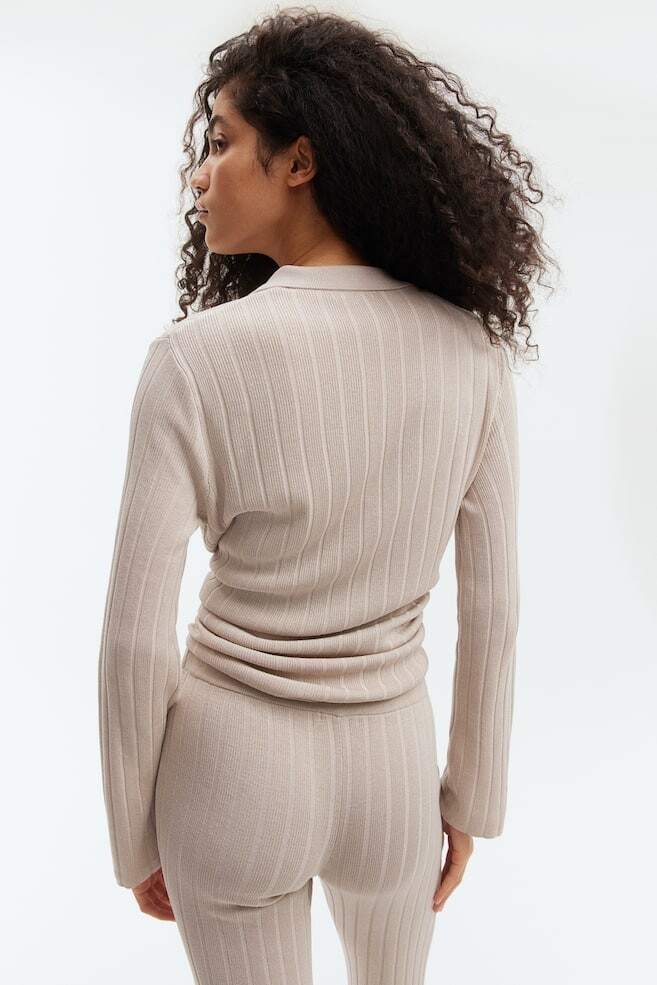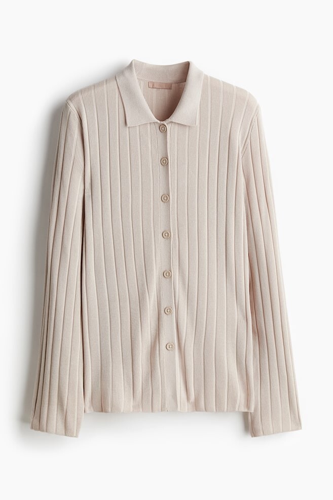 Рубашка на пуговицах из трикотажа в рубчик H&M, бежевый