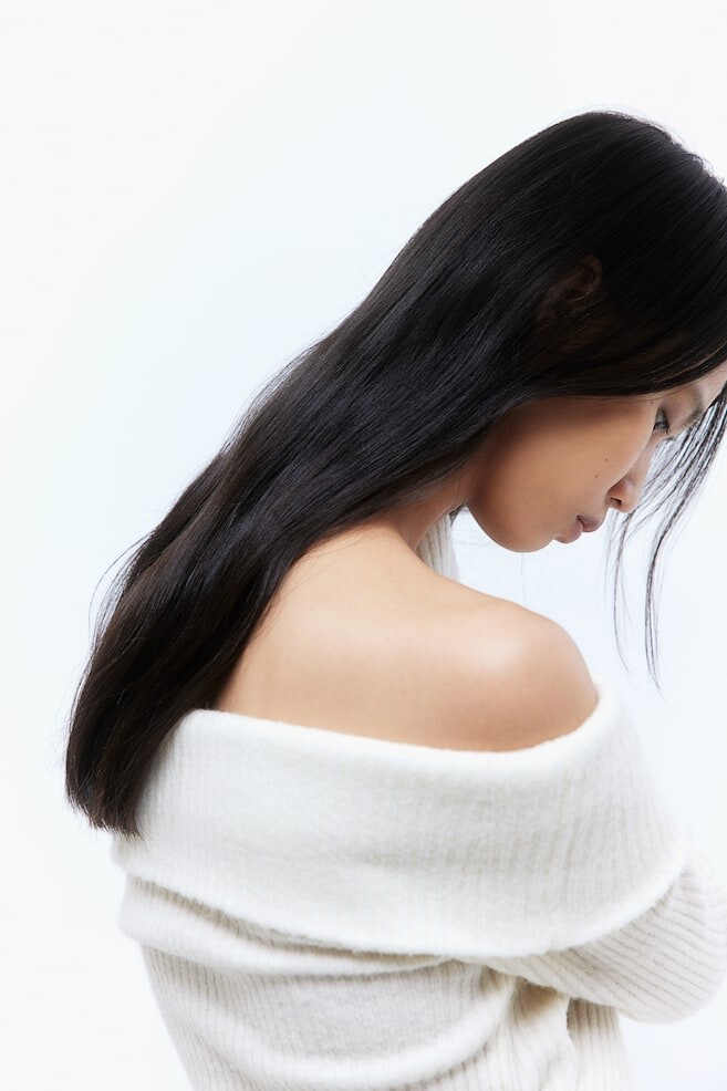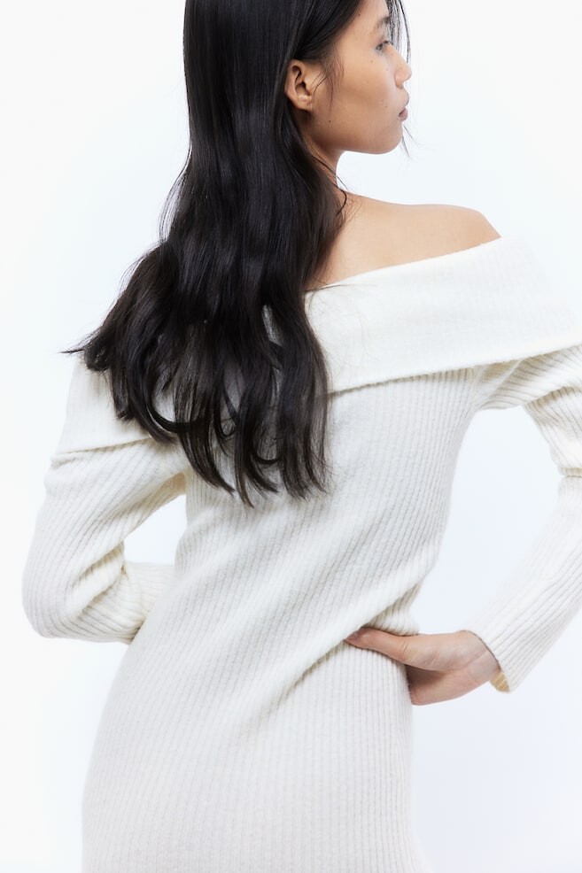 Платье без плеч из трикотажа в рубчик H&M, белый 2 589₽
