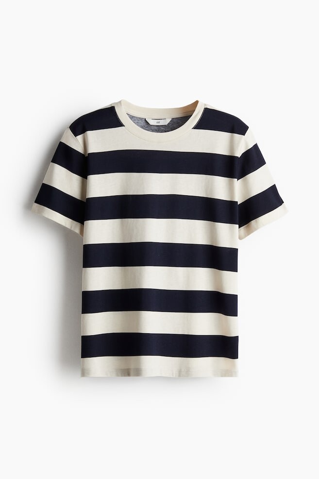 Футболка из мягкого хлопкового трикотажа с принтом спереди и ребристой вставкой на шее.