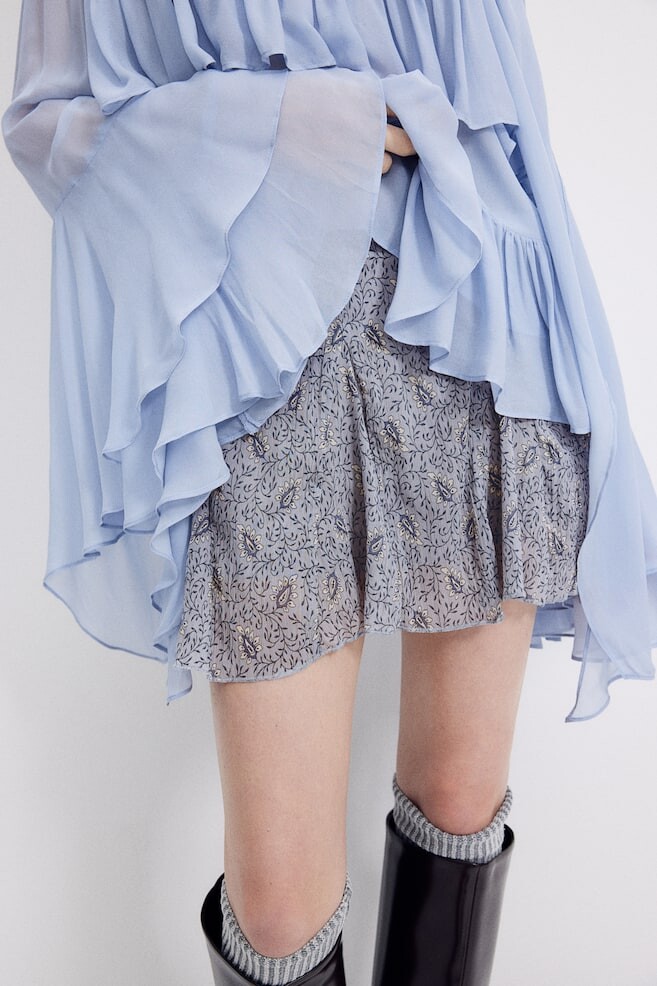 Короткая юбка из крепа с высокой талией, потайной боковой молнией и вставками из ткани на танкетке для создания расклешенного силуэта. Под шортами. Размер модели: рост модели 178 см/5 футов 10 дюймов, на ней размер 38. Размер: Талия: окружность: 79,0 см (размер 40), спина: длина: 39,5 см (размер 40). ) Длина: Короткая Высота талии: Высокая талия Посадка: Свободный крой Стиль: Расклешенный