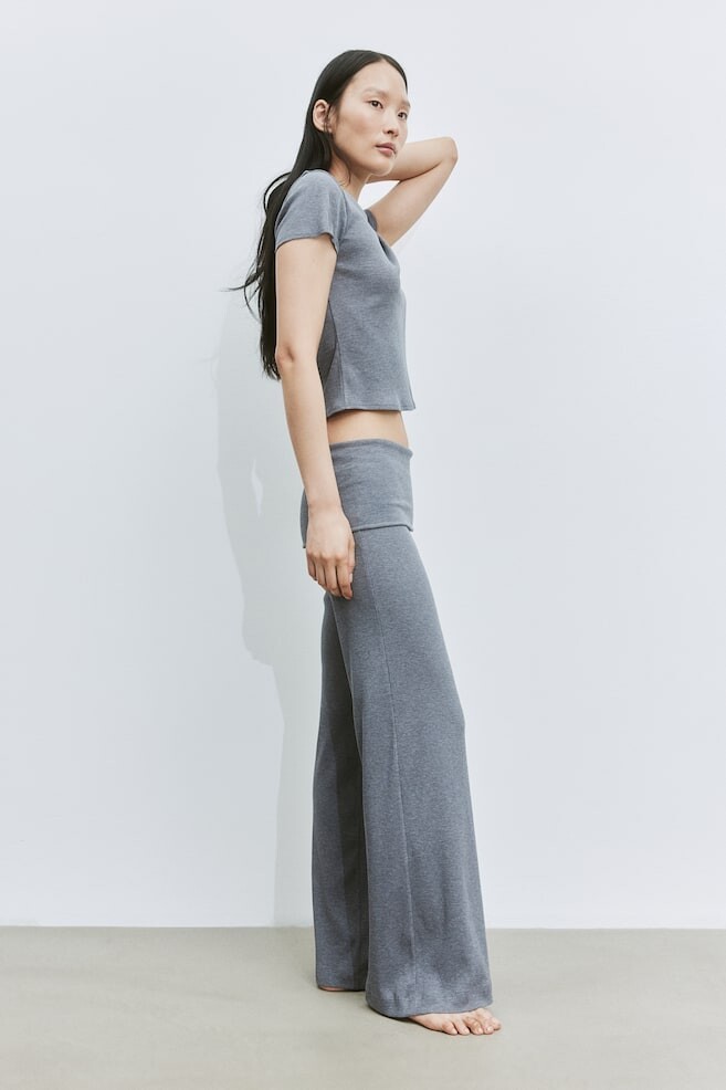 Облегающая фигуру футболка из трикотажа в рубчик с узкой ребристой отделкой по вырезу.