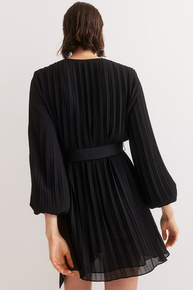 Короткое платье А-силуэта из плиссированного шифона со съемным атласным поясом под грудью. Свободная посадка. Круглый вырез горловины и разрез на обтянутой пуговице спереди. Длинные рукава-фонарики с узкой резинкой на манжетах. На подкладке. Размер модели: рост модели 183 см/6 футов 0 дюймов, размер M. Размер: Рукав: Длина: 61,5 см (размер M), спинка: Длина: 86,0 см (размер M). , Плечо: Ширина: 40,5 см (размер M) Длина: Короткая Длина рукава: Длинный рукав Посадка: Свободная посадка Фильм: А-силуэт, Капюшон Вырез: Круглый вырез Фон рукава: Объемный рукав Идея: МАМА