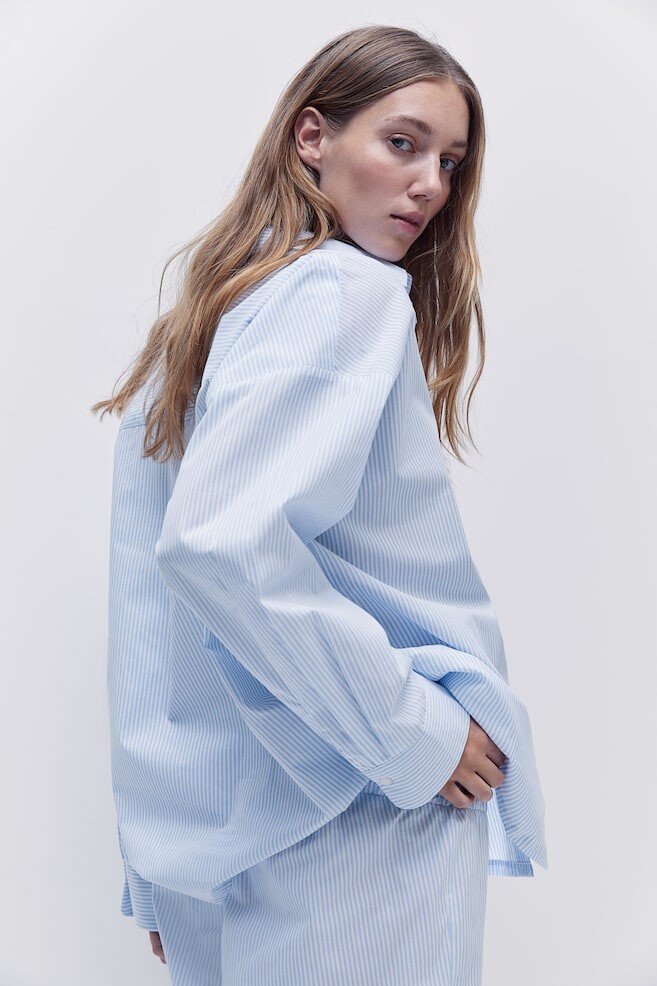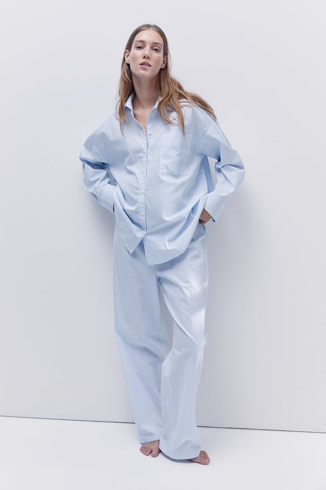 Пижама с хлопковым верхом и брюками. Верх имеет воротник, планку с пуговицами и плиссированную кокетку сзади, а также заниженную линию плеч и длинные рукава с разрезом и пуговицей на манжетах. Накладной нагрудный карман и узкий съемный пояс под грудью. Брюки прямого кроя с эластичным поясом на кулиске. Пижаму можно носить как во время беременности, так и в последующий период грудного вскармливания. Штук/пар: 2 Длина: Длинная, Нормальная Длина рукава: Длинный рукав Воротник: Отложной Концепция: МАМА