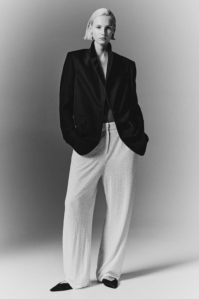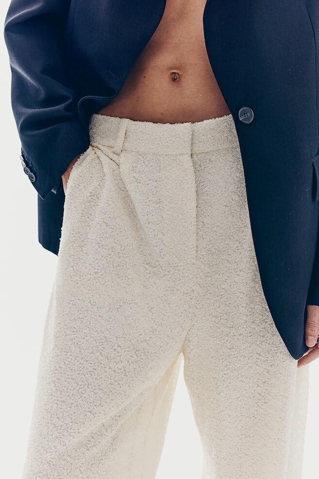 Брюки свободного кроя из сетки с пайетками. Завышенная талия, застежка на молнию, потайную пуговицу и крючок. Косые боковые карманы и ложные прорезные карманы сзади. Ноги прямые, со складками. На подкладке. Размер модели: рост модели 180 см/5 футов 11 дюймов, на ней размер 42. Размер: Талия: окружность: 79,0 см (размер 40), внутренняя часть штанины: длина: 75,0 см (размер 40). ) Длина: Длинная Высота талии: Высокая талия Посадка: Свободная посадка Фильм: Прямые штанины