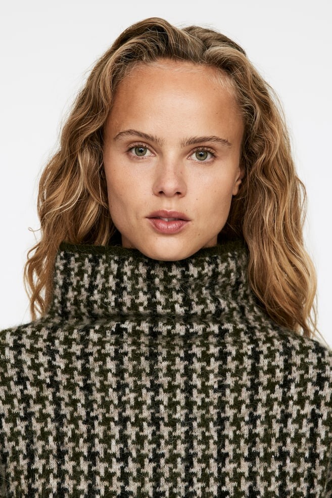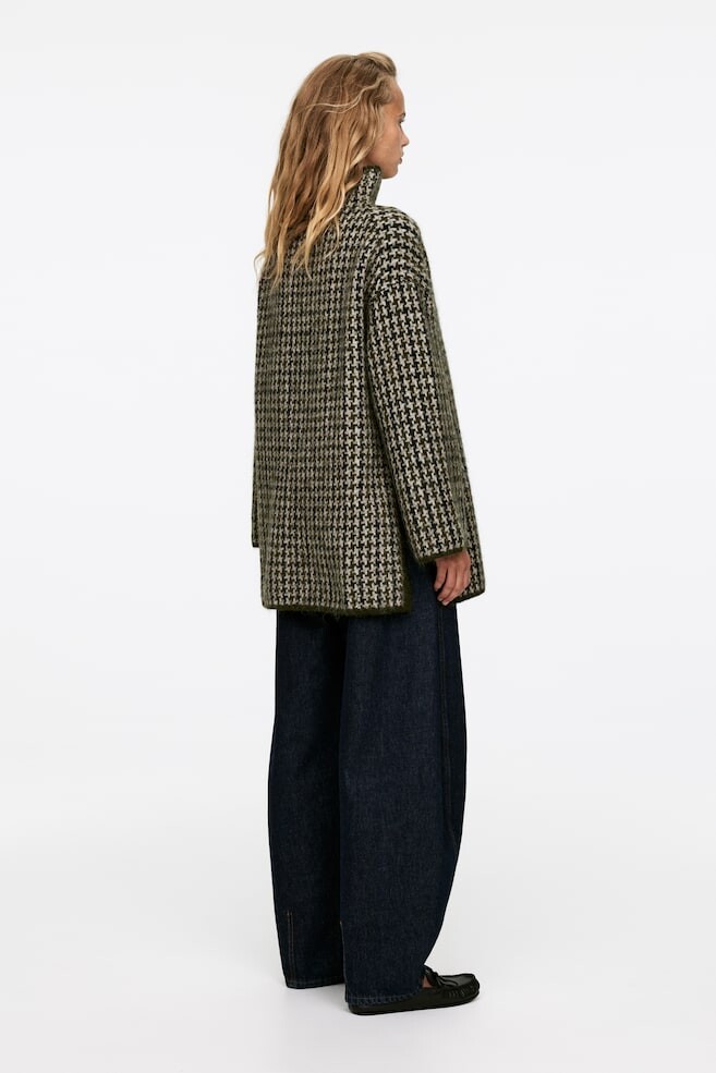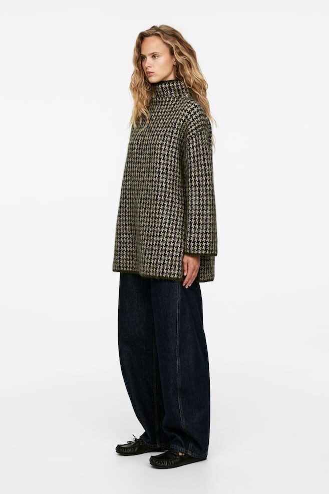 Вязаный жаккардовый свитер из шерсти и альпаки. Модель с длинными рукавами, воротником-стойкой и свободным кроем. Свитер на 31% изготовлен из шерсти, сертифицированной RWS (TE-00047206). Продукция, сертифицированная по стандарту ответственной шерсти (RWS), содержит шерстяные волокна с ферм, которые независимо сертифицированы на соответствие требованиям защиты животных и землепользования. Размер модели: рост модели 179 см/5 футов 10 дюймов, на ней размер S. . Длина: Обычная длина Длина рукава: Длинный рукав Посадка: Свободный крой Воротник: Тоннель Вырез: Водолазка