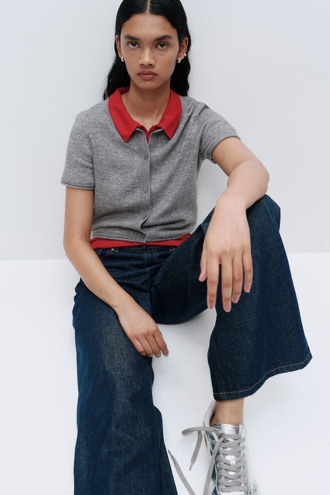 Кардиган тонкой вязки с короткими рукавами H&M, серый