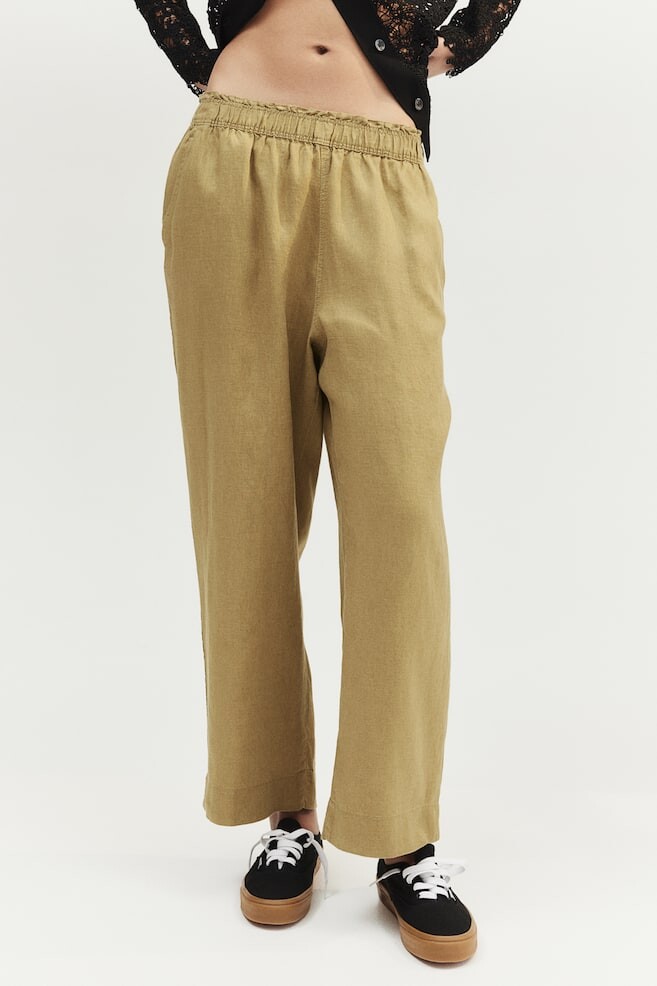 Льняные брюки длиной до щиколотки H&M, зеленый