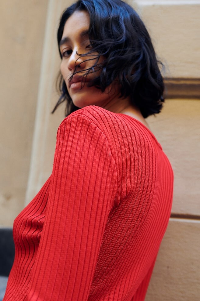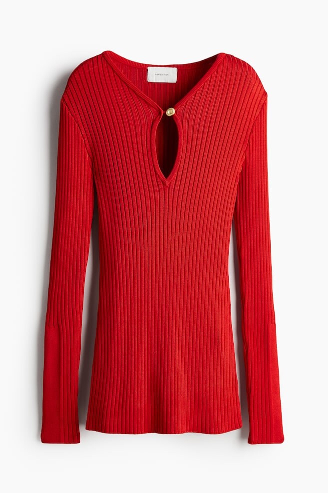 Длинная, облегающая фигуру рубашка из плотного ребристого трикотажа с V-образным вырезом и вырезом на золотистой пуговице спереди. Длинные рукава со вставками тонкой вязки на одной стороне манжет. Прямой низ. Рост модели: рост модели 179 см/5 футов 10 дюймов, размер S. Длина: длинная Длина рукава: длинный рукав Посадка: приталенная Фильм : Замочная скважина Вырез: круглый вырез Идея: H&M EDITION