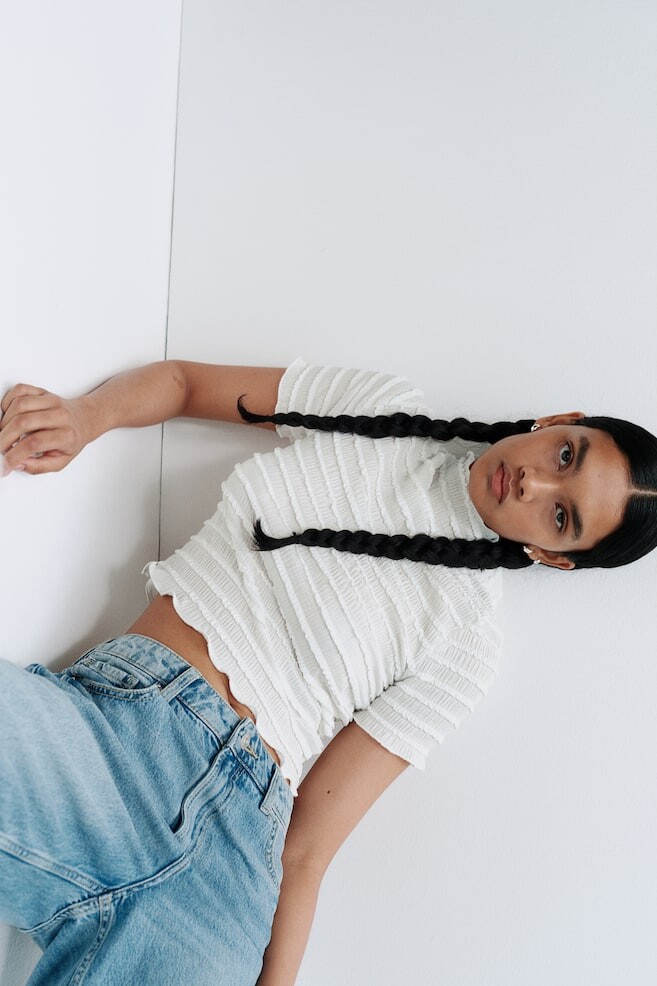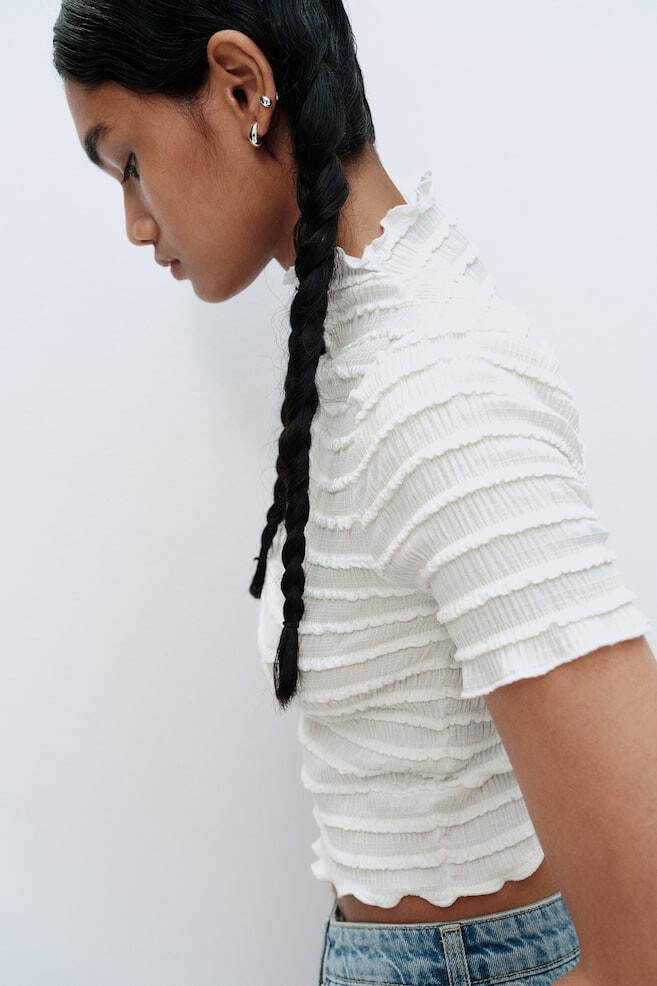 Присборенная рубашка с деталями оверлока H&M, белый