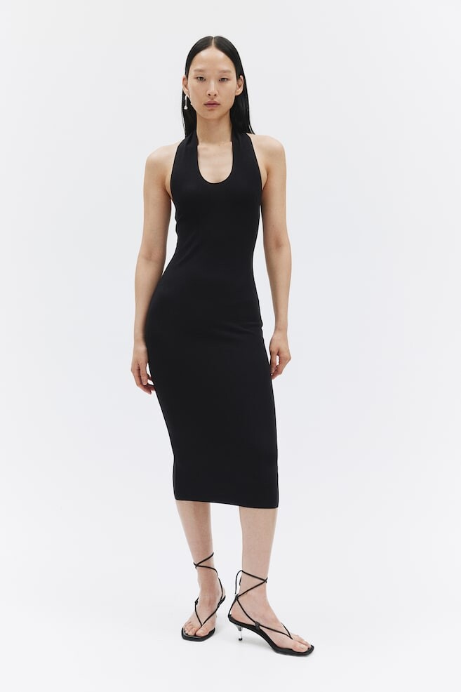 Облегающее платье с вырезом халтер H&M, черный