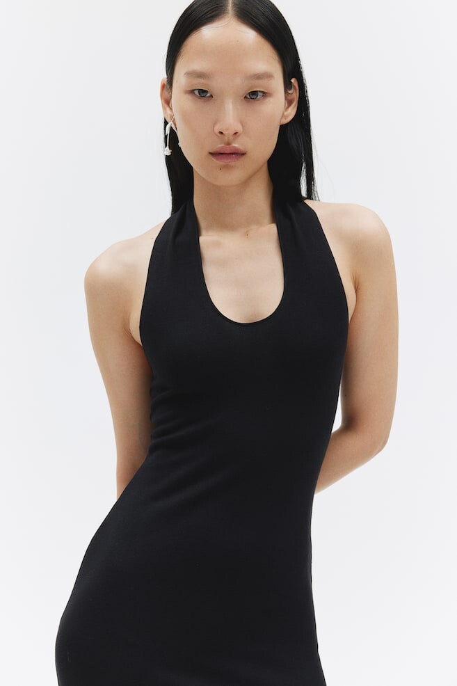 Облегающее платье с вырезом халтер H&M, черный 3 411₽