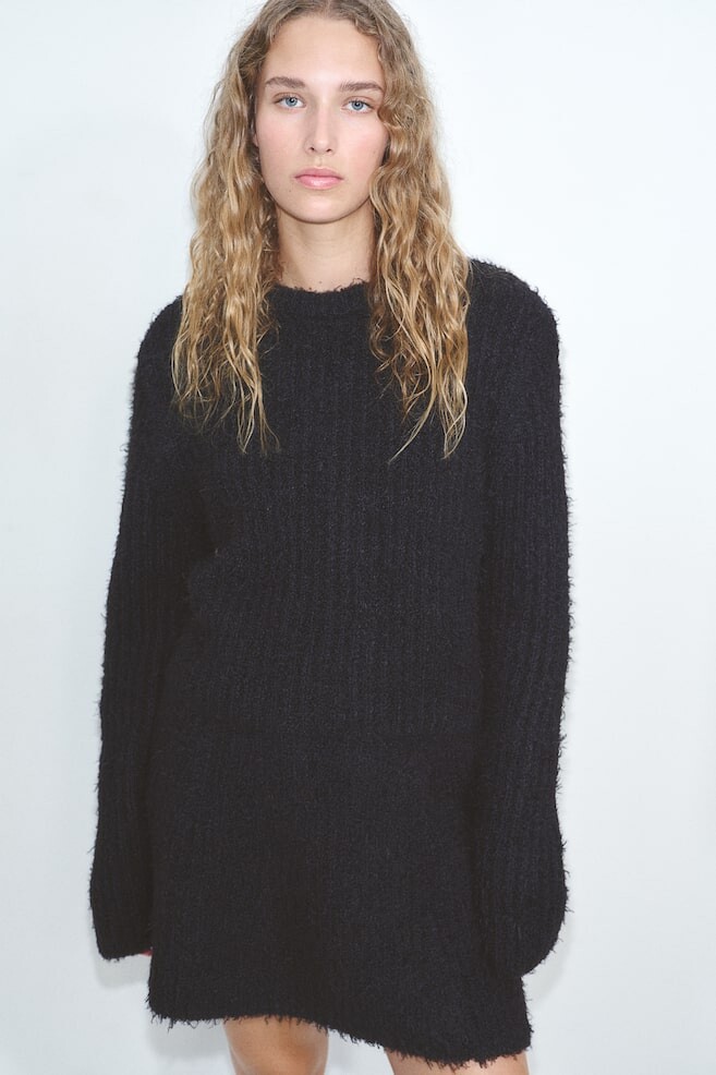Короткая расклешенная юбка из мягкого, пушистого ребристого трикотажа. Потайной эластичный пояс и прямой подол. Свободный крой.