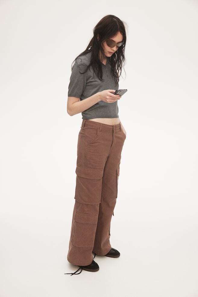 Брюки из хлопкового твила с застежкой-молнией и пуговицей, косыми передними карманами и широкими штанинами. Открытые задние карманы и два кармана-книжки с клапанами на каждой штанине. Размер модели: рост модели 179 см/5 футов 10 дюймов, на ней размер 34. Длина: длинная Высота талии: нормальная высота талии. Посадка: Обычная посадка Фильм: Карго, Широкая Концепция: РАЗДЕЛЕННАЯ