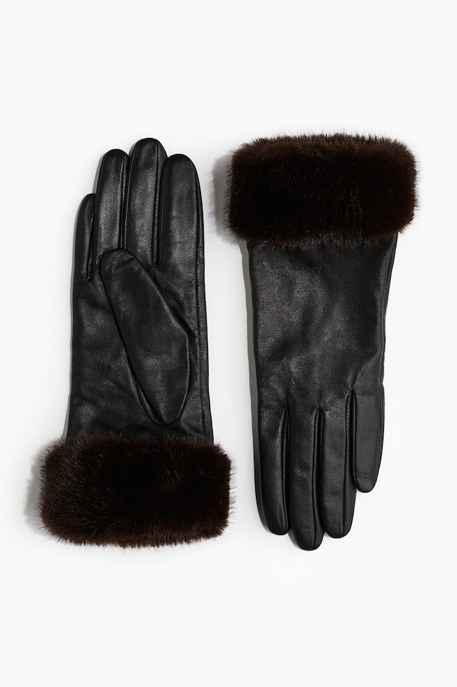 Кожаные перчатки с пушистой отделкой H&M, черный 3 618₽