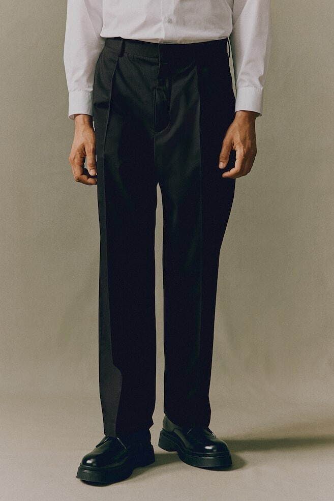 Костюмные брюки с клапаном на поясе, потайной пуговицей, застежкой на крючок и молнией. Косые боковые карманы, прорезные карманы на пуговицах сзади и прямые брючины с проутюженными складками. Повседневный крой, свободный, но не слишком большой силуэт. Размер модели: рост модели 187 см/6 футов 2 дюйма, на ней размер 50. Размер: внутренняя часть штанины: длина: 78,0 см (размер 52) Длина: Длинная Высота талии: Нормальная высота талии Посадка: Свободная посадка Стиль: Прямые брюки, костюмные брюки Концепция: H&M МУЖЧИНА