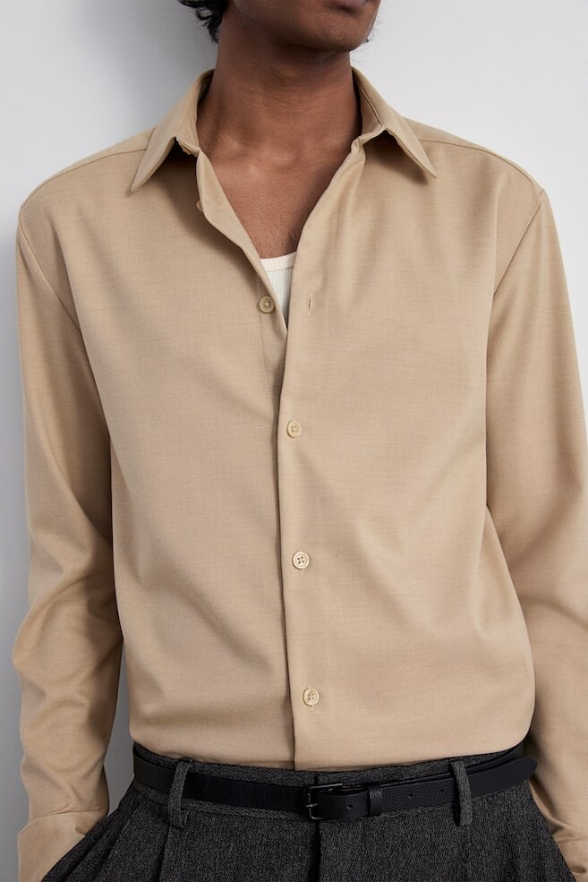 Рубашка из твила обычного кроя H&M, бежевый