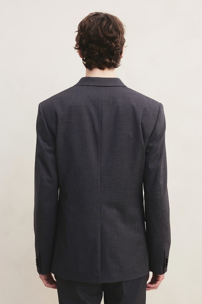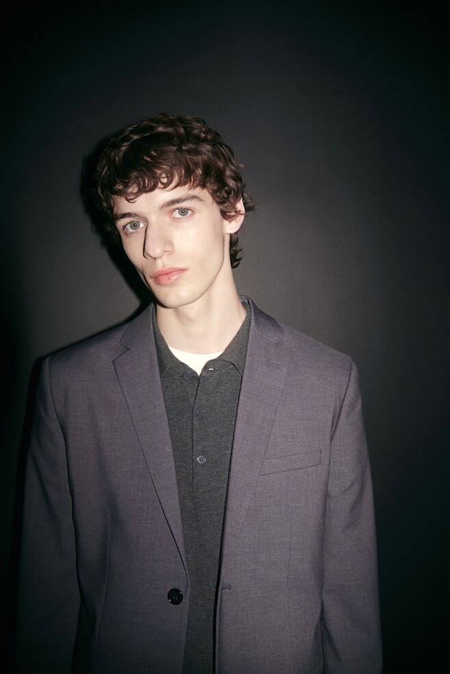 Однобортный пиджак из эластичной ткани с фигурными лацканами, декоративными петлицами, нагрудным карманом, карманами с клапанами и внутренним карманом. Тонкая посадка. С двумя пуговицами спереди, декоративными пуговицами на манжетах и разрезом сзади. На подкладке. Длина: Стандартная длина Длина рукава: Длинный рукав Посадка: Облегающий крой Воротник: Лацкан Фильм: Однобортный Концепция: H&M MAN