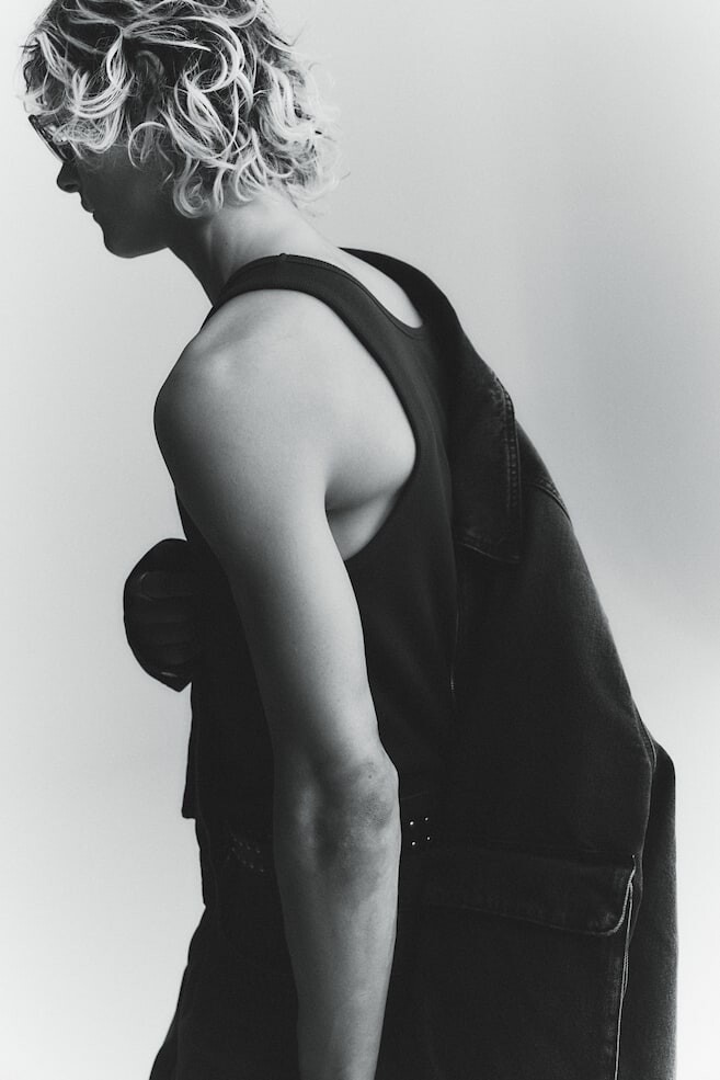 Куртка из прочного хлопкового денима с воротником, планкой на пуговицах, кокеткой сзади и большими передними карманами с клапанами. Манжеты на пуговицах и регулируемые бретели с пуговицами по бокам подола. Прямой подол. Свободный крой, свободный, но не слишком большой силуэт. Размер модели: рост модели 185 см/6 футов 1 дюйм, размер M. Размер: Рукав: Длина: 60,5 см (размер L), плечо. : Ширина: 60,0 см (размер L) Длина: Стандартная длина Длина рукава: Длинный рукав Посадка: Свободный крой Воротник: Отложной воротник Фильм: куртка дальнобойщика.