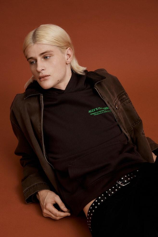 Толстовка с капюшоном с мотивным принтом из смесового хлопка с мягкой начесом внутри. Двухслойный капюшон с запахом, заниженная линия плеча, передний карман-кенгуру, ребристые манжеты и нижний край. Свободный крой с просторным, но не слишком большим силуэтом. Рост модели: рост модели 188 см/6 футов 2 дюйма, размер L. Длина: стандартная длина Длина рукава: длинный рукав Посадка: свободная посадка Стиль: толстовка