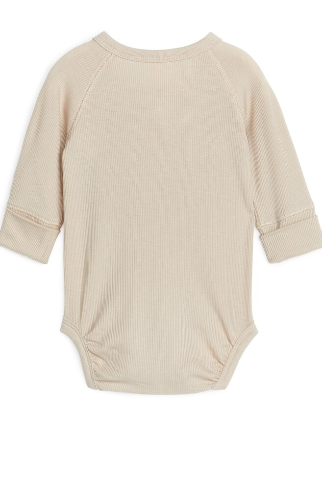 Боди с длинными рукавами для новорожденных. Изготовлен из ультрамягкого и легкого трикотажа в рубчик из лиоцелла и эластичного эластана. Кнопки в области промежности и закатанные рукава обеспечивают оптимальную посадку.