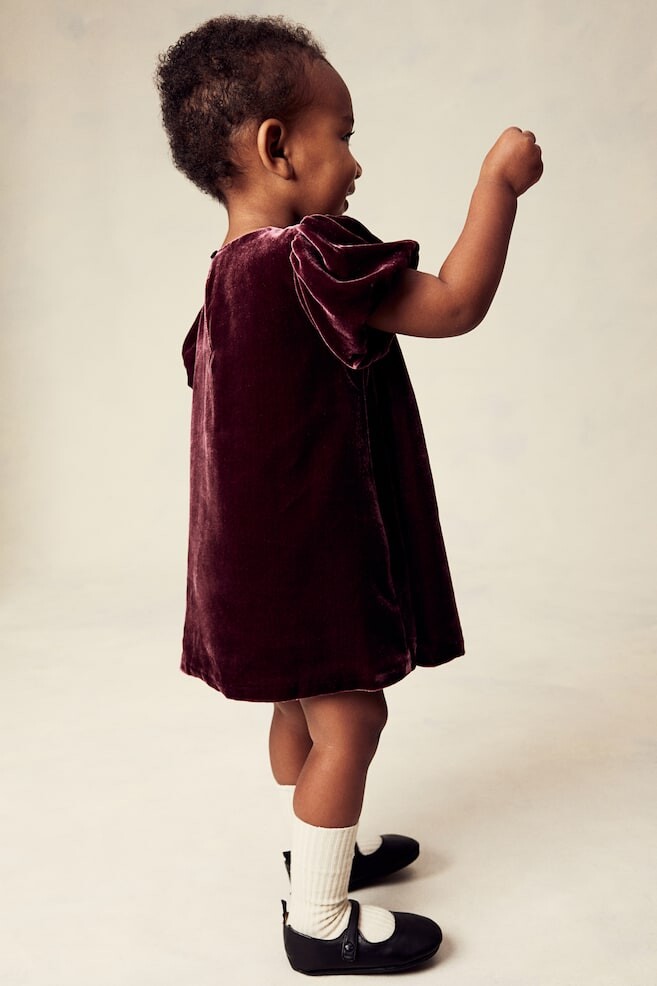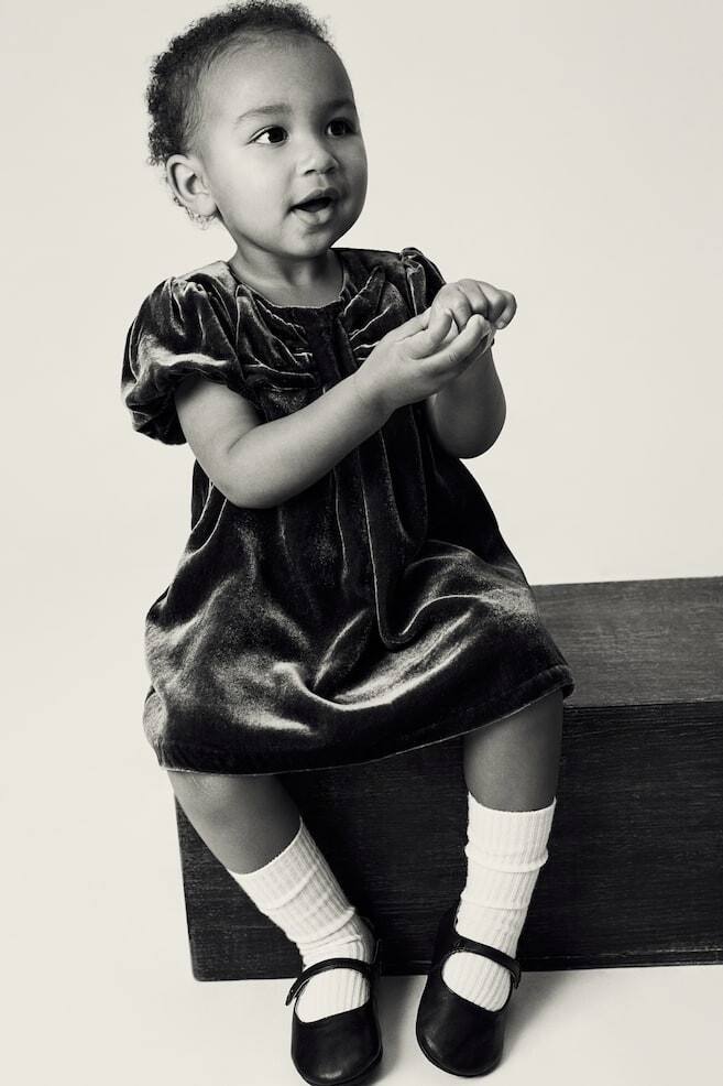 H&M AdorablesH&M Premium Selection H&M Adorables. Мягкое бархатное платье А-силуэта из смесового шелка с естественным блеском и гладкостью. Круглый вырез горловины с декоративным бантом и складками спереди. Короткие рукава-фонарики с потайной резинкой на манжетах. С каплевидным вырезом и пуговицей сзади. На подкладке. Длина: до колена Длина рукава: Короткий рукав Посадка: Классический крой Фильм: А-силуэт, каплевидный вырез Вырез: Круглый вырез Фон рукава: Рукав-фонарик Концепция: H&M Adorables Что нужно знать: H&M Premium Selection