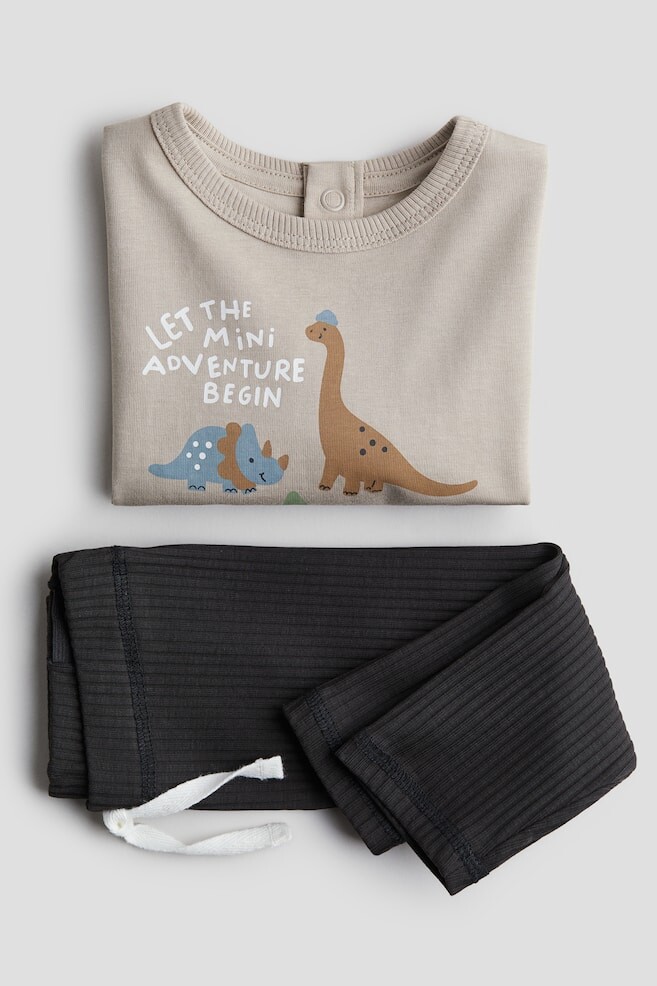 Комплект из рубашки и леггинсов из мягкого хлопкового трикотажа. Рубашка с длинными рукавами, мотивным принтом, круглым вырезом, заниженной линией плеч и потайными кнопками сзади. Леггинсы в рубчик с регулируемой резинкой и декоративным поясом на кулиске. Штуков/пар: 2 Длина: Длинная, Стандартная длина Высота талии: Нормальный пояс Длина рукава: Длинный рукав Вырез: Круглый вырез Что нужно знать: Регулируемый пояс.