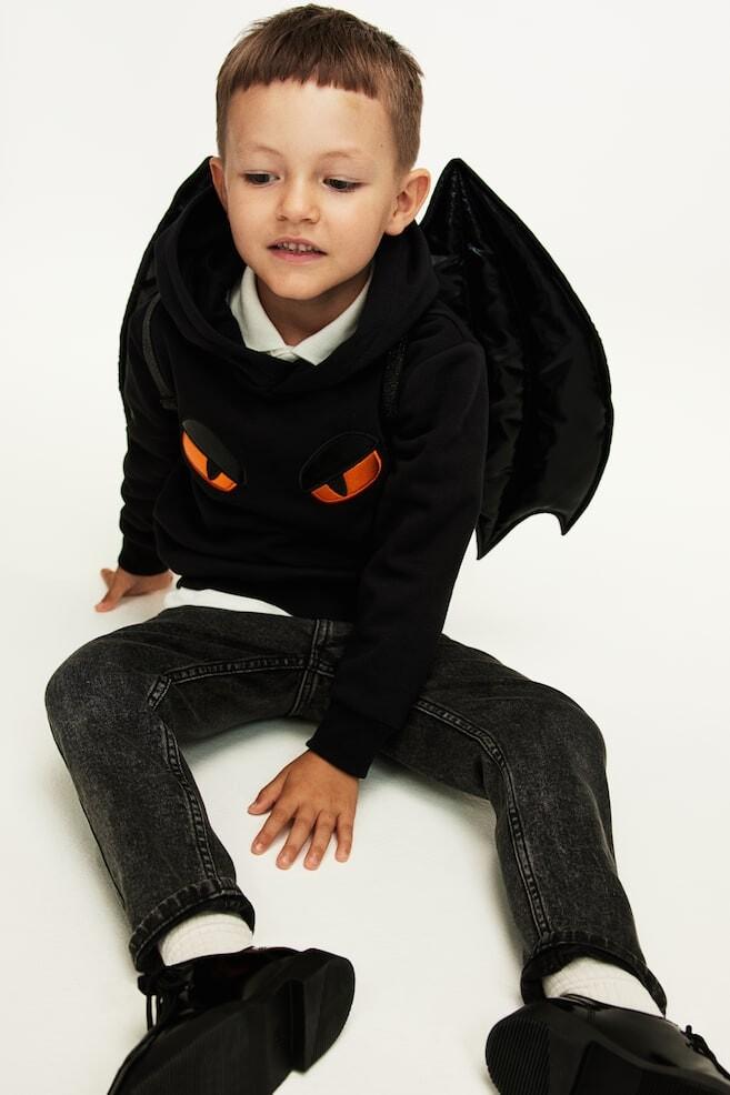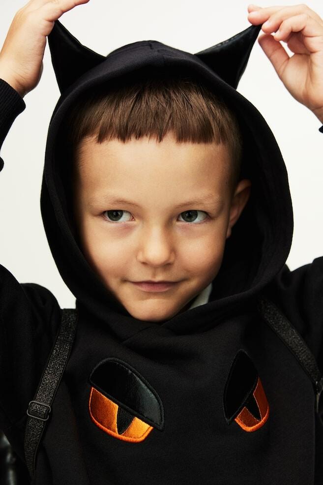 Рубашка с капюшоном из пота и мягкой начесовой изнанкой. С аппликациями спереди, накладным капюшоном на подкладке и пришитыми ушками. Вырез на плечах, ребристые манжеты и подол.