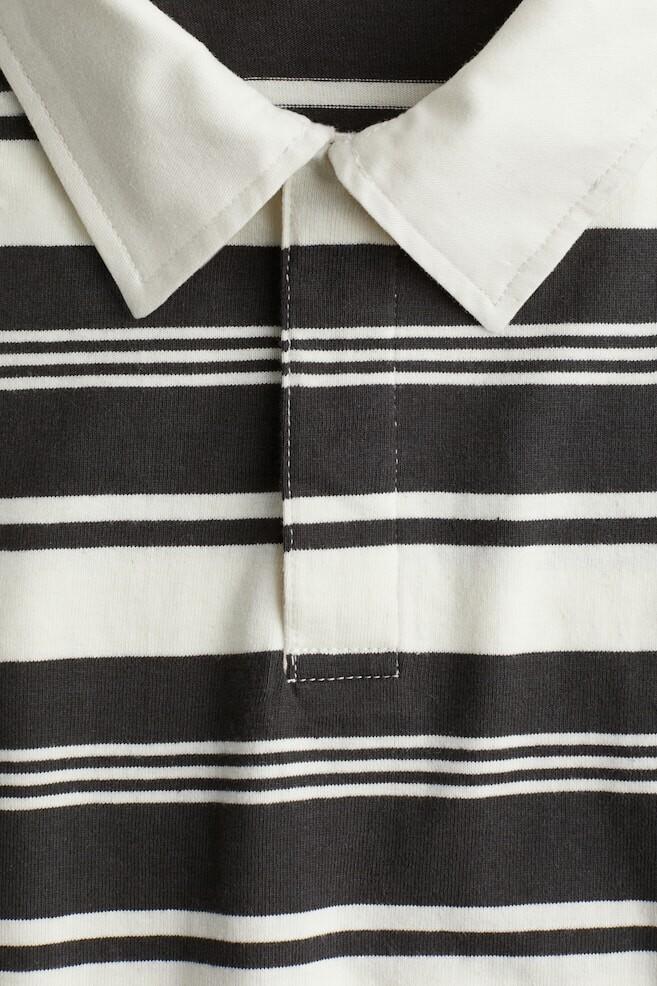 Рубашка для регби свободного кроя из хлопкового трикотажа с хлопковым воротником, планкой на потайных пуговицах, заниженной линией плеча и длинными рукавами.