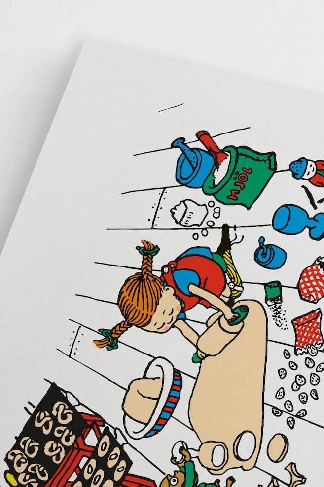 Пеппи Длинныйчулок — вечный персонаж, созданный шведской писательницей Астрид Линдгрен. Обладая добротой, оранжевыми косами, веснушчатым лицом и недюжинной силой, Пеппи ведет полную приключений жизнь на вилле Кунтербунт в сопровождении своего коня Маленького дяди и обезьяны мистера Нильссона. С 1945 года Пеппи покорила сердца читателей всего мира и стала любимым символом свободы, силы и необычности. Изображения проиллюстрировала Ингрид Ванг Найман. Иллюстрация Пеппи Длинныйчулок, пекущейся на полу, со своей обезьянкой мистером Нильссоном. Мотив размещен на бежевом фоне. Вес: 50 г Категория помещения: Детская Описание: Красный/зеленый, Пеппи Длинныйчулок, иллюстрации, детский плакат, кухня, выпечка, обезьянка, Пеппи Длинныйчулок.