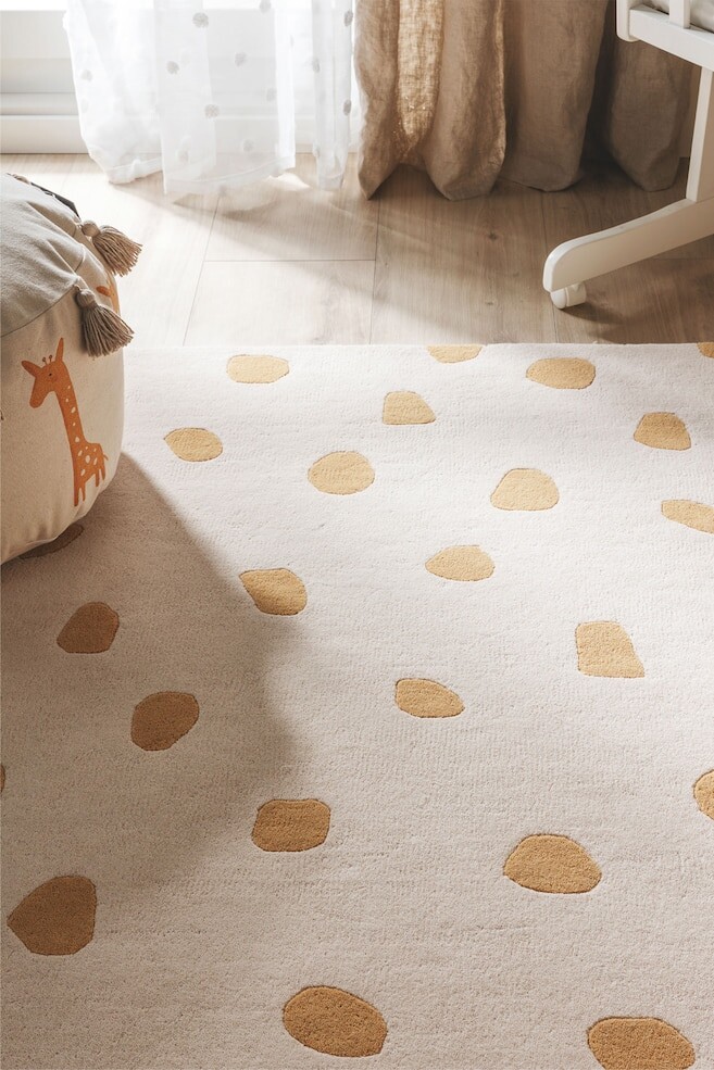Детский ковер Саванна соткан вручную из 100% шерсти. Эта вещь от бренда Lytte желтого цвета и имеет следующую структуру: геометрический, мех животных. Размеры изделия: 120х170 см.