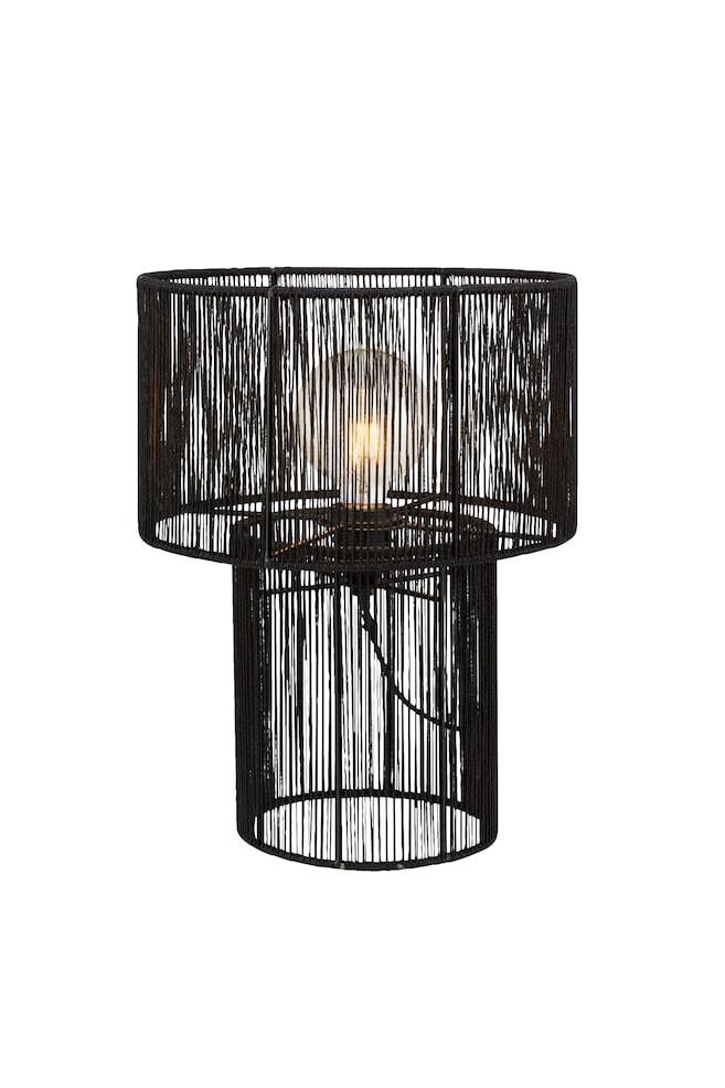 Настольная лампа в деревенском стиле с черным абажуром и джутовым основанием ручной работы. Для настольной лампы требуется источник света с большой розеткой (E27) мощностью макс. 40 Вт или эквивалентной светодиодной лампой, не входит в комплект. Черный текстильный кабель длиной 220 см с выключателем и вилкой. Размер светильника: ширина 30 см, глубина 30 см, высота 40 см. Вес: 1,1 кг Категория помещения: Гостиная Описание: Черный
