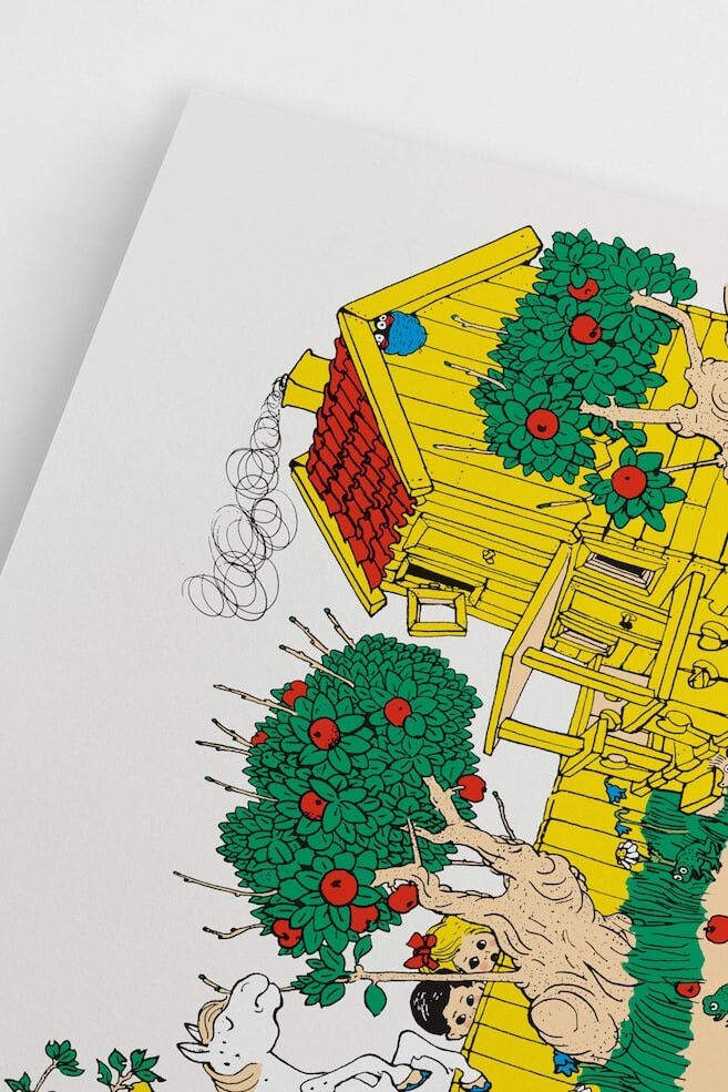 Пеппи Длинныйчулок — вечный персонаж, созданный шведской писательницей Астрид Линдгрен. Обладая добротой, оранжевыми косами, веснушчатым лицом и недюжинной силой, Пеппи ведет полную приключений жизнь на вилле Кунтербунт в сопровождении своего коня Маленького дяди и обезьяны мистера Нильссона. С 1945 года Пеппи покорила сердца читателей всего мира и стала любимым символом свободы и силы. Иллюстрация Пеппи, несущей над головой своего коня Маленького Дядюшку. На заднем плане показан дом Пеппи. Ее друзья Томми и Анника выглядывают из-за забора. Под картинкой на английском языке написана цитата Пеппи. Мотив расположен на бежевом фоне. Иллюстрации Ингрид Ванг Найман. Вес: 50 г Категория номера: Детская комната Описание: Зеленый/желтый, Пеппи Длинныйчулок, иллюстрации, детский плакат, графика, домик, лошадь, Пеппи Длинныйчулок