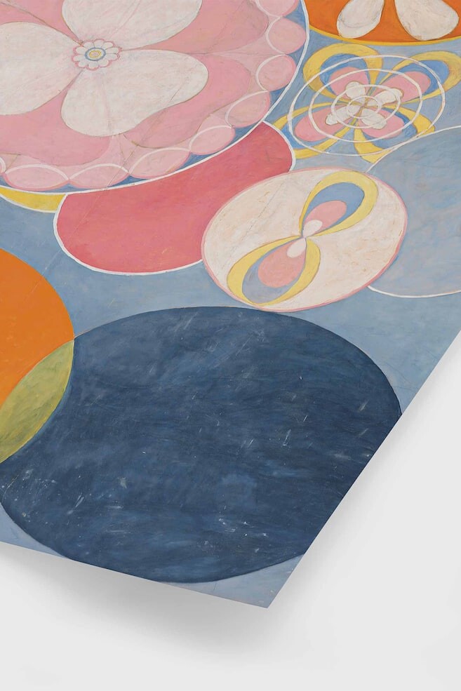 Художница Хильма аф Клинт. Игра кругов и форм привлекает внимание к этому уникальному и элегантному плакату. Нежные тона розового и оранжевого контрастируют с синим фоном. Этот принт можно комбинировать со многими нашими плакатами известных художников.