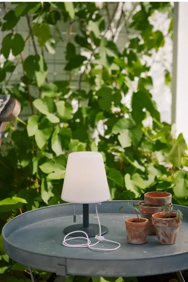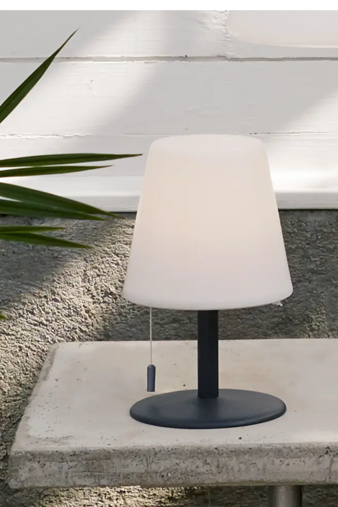 Декоративная портативная настольная лампа с теплым белым светом. Потянув за шнур, можно изменять световой поток (слабый или сильный свет). Аккумуляторная батарея заряжается с помощью прилагаемого USB-кабеля. Подходит для внутреннего и наружного использования. Теплыми летними вечерами в саду или на балконе модель выступает уютным дополнительным источником света. При полной зарядке аккумулятора освещение длится до 6-7 часов. Высота лампы 26,5 см, диаметр абажура 16 см. Вес: 830 г Категория помещения: для наружного применения Номинальный диапазон напряжения: 3p7VDC Номер модели: 803-69 Код IP: IP44 ЭТОТ СИМВОЛ ОЗНАЧАЕТ, ЧТО ИЗДЕЛИЕ НЕ ДОЛЖНО УТИЛИЗИРОВАТЬСЯ С БЫТОВЫМИ ОТХОДАМИ. ПРЕДМЕТ ДОЛЖЕН БЫТЬ ПЕРЕРАБОТАН В СООТВЕТСТВИИ С МЕСТНЫМИ ЭКОЛОГИЧЕСКИМИ НОРМАМИ ПО УТИЛИЗАЦИИ ОТХОДОВ. ПЕРЕРАБОТКА ЭТОГО ПРЕДМЕТА ВЫ ПОМОЖЕТЕ МИНИМИЗИРОВАТЬ ЛЮБОЕ ПОТЕНЦИАЛЬНОЕ НЕГАТИВНОЕ ВОЗДЕЙСТВИЕ НА ЗДОРОВЬЕ ЧЕЛОВЕКА И ОКРУЖАЮЩУЮ СРЕДУ.