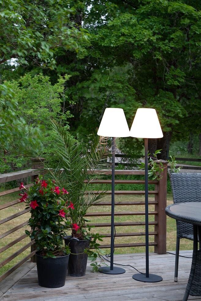 Этот торшер отлично смотрится на террасе или балконе, но, конечно же, его можно использовать и в помещении. База Е27. Лампы доступны отдельно. Световое свечение можно варьировать с помощью разных ламп (до 25 Вт). Диаметр лампы не должен превышать 7 см. Высота модели 150 см, ширина 28 см. Вес: 4,83 кг Категория помещения: для наружного применения Номинальный диапазон напряжения: 230 В Номер модели: 803-91 Код IP: IP65
