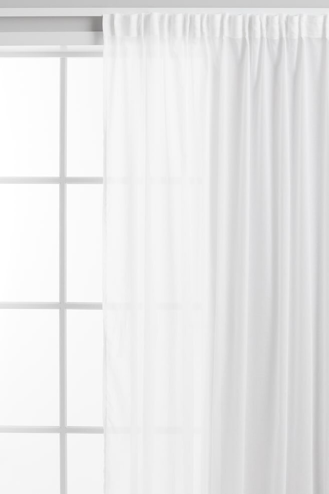 Очень широкий шарф-шторка из вуали из смеси хлопка и полиэстера. С многофункциональной лентой для четырех различных вариантов подвешивания: с петлями непосредственно на карнизе, с крючками на палец, с крючками на четыре пальца или в современной волнистой складке. Крючки в комплект не входят. На подкладке. Категория номера: Гостиная Описание: Белый, Однотонный
