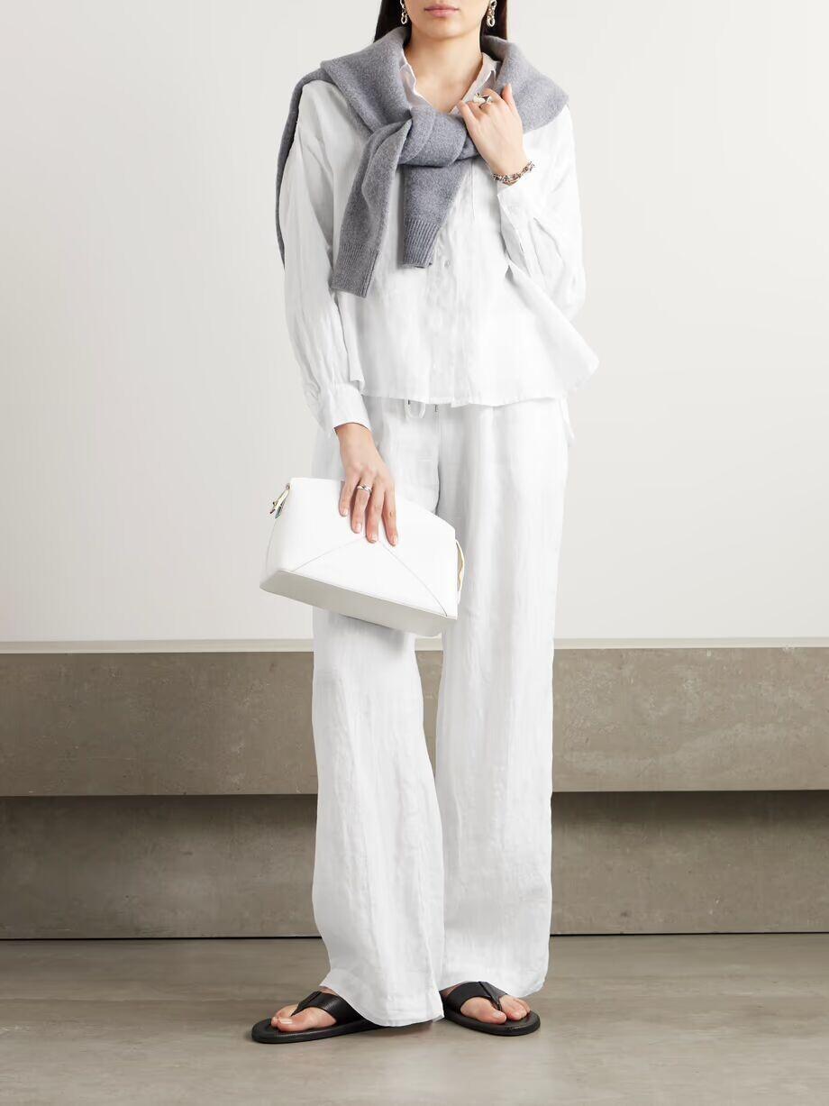 - Белый лен - Застежка на пуговицы спереди - 100% лен - Машинная стирка